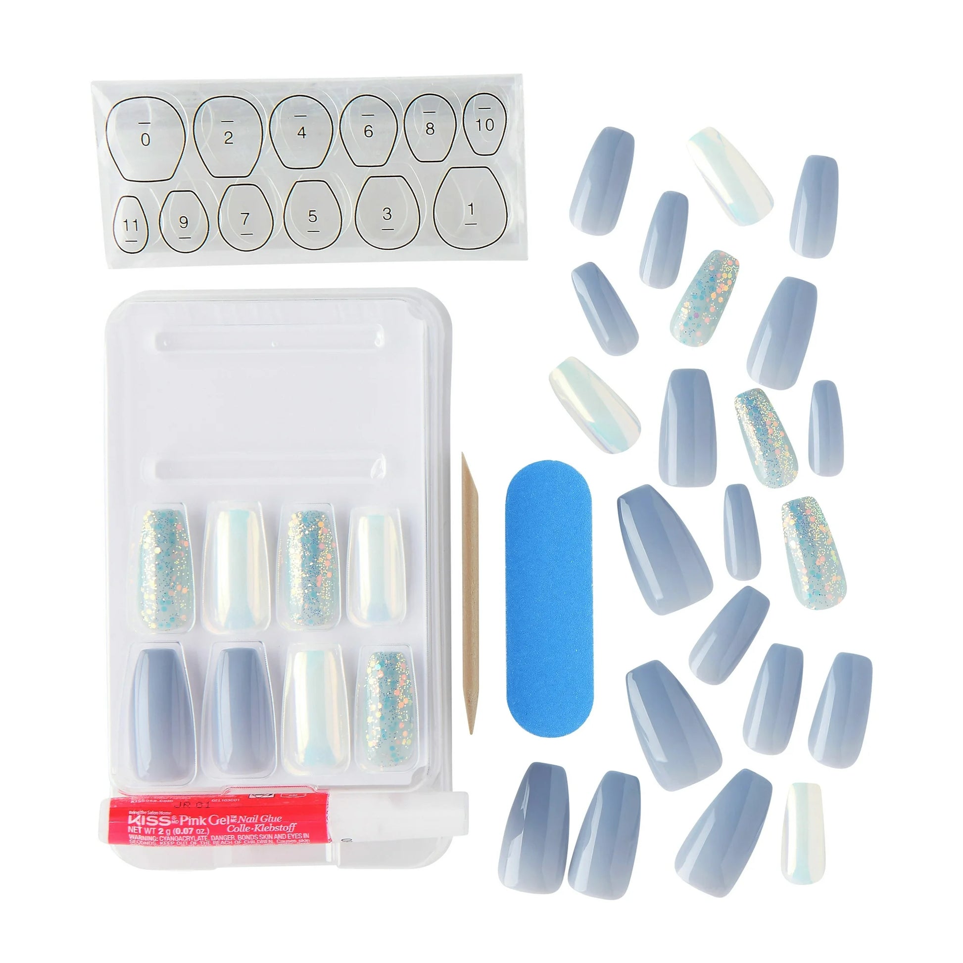 - Use KISS Glue OFF, or soak nails in acetone polish remover until soft.