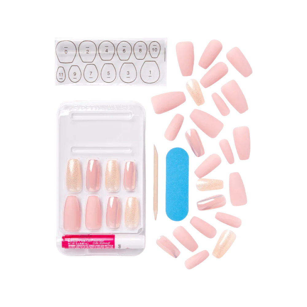 Kit includes 28 Nails, 24 mega-adhesive Tabs, Pink Gel Glue (2g), Mini File