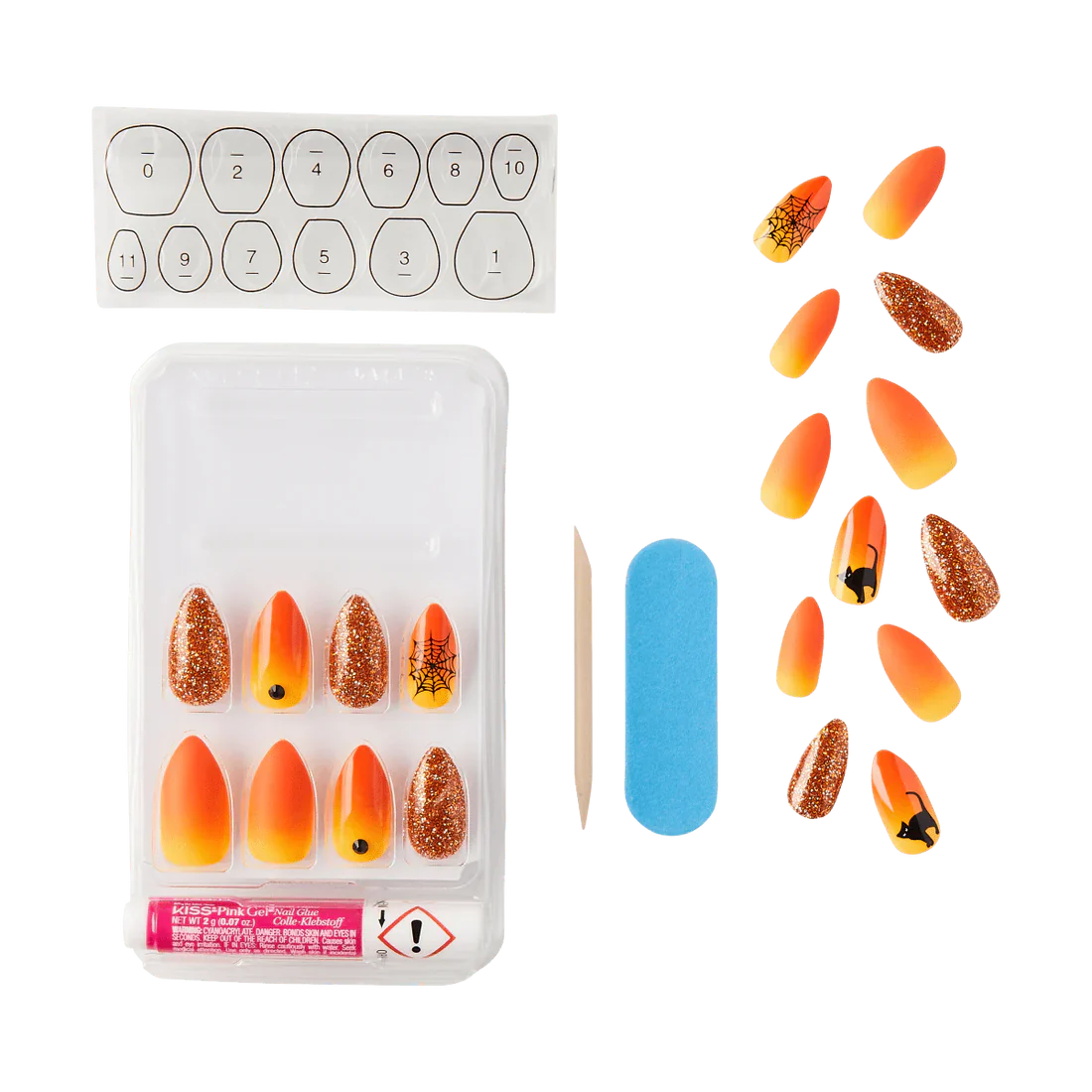 Glow limited edition Halloween Special Design false nails look frightfully fab. From wicked to adorable, square to dagger-like, ghoul looks rule!
